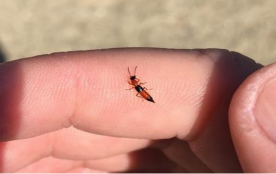 不过,并不是所有的隐翅虫都是有毒的。一般常见的有毒的隐翅虫,就是身体呈‘黑红相间’体色的梭毒隐翅虫。它一般不会咬人,但如果拍打它,它的体液接触到我们的皮肤,就会起水疱,并引起隐翅虫皮炎。