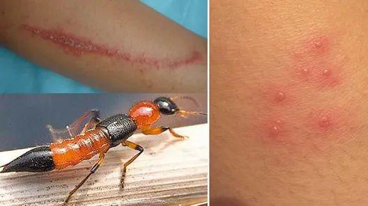 隐翅虫很少主动招惹人,绝大部分人被“攻击“,是因为直接上手一巴掌拍“爆浆”,或不小心压到它,碰到了它体内的强酸性毒液,才会导致皮肤“烂掉”。