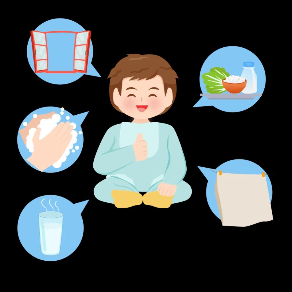 (2)注意个人卫生,保持良好的呼吸道卫生习惯。使用肥皂或洗手液并用流动水洗手,饭前便后及接触脏东西后要洗手,勤换、勤洗、勤晒衣服和被褥;咳嗽或打喷嚏时,用纸巾、毛巾遮掩口鼻,若双手接触了呼吸道分泌物应立即洗手,避免脏手接触口、眼、鼻。