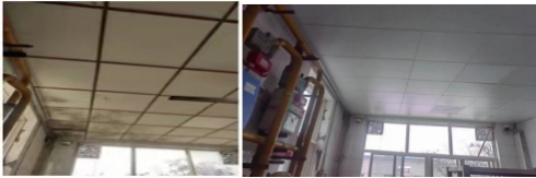 —是对餐厅 1楼、2 楼用餐区天花板脱落墙皮进行维修, 使餐厅环境焕然—新;二是对食堂毛菜间破损严重的天花板 进行了整体更换, 确保食堂防鼠不留漏洞;三是对后厨地沟 进行了整改, 盖板查漏补缺换新, 不留间隙; 四是对油烟管