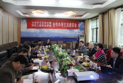 11月29日,台湾侨光科技大学董事长陈伯涛博士及夫人张媛女士、总务长高国平博士、国际与两岸中心事务主任傅秀仁博士一行四人来我校访问交流。校纪委书记徐晓曦,合作办学处负责人、各系主任在郭杜校区会议中心与来访客人就两校合作办学进行了深入交流座谈。
